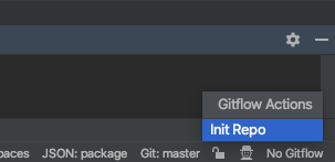 기본 옵션을 설정하고 나면 No gitflow 에서 gitflow 로 변경되고 gitflow 를 클릭하면 원하시는 동작을 할 수 있습니다.
