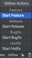 Start Feature를 눌러 feature 브런치를 생성하고 finish feature를 하면 자동으로 develop 브런치에 merge 가 이루어집니다.