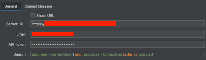 JIRA 버튼을 누르면 설정창이 뜨는데 설정창에서 Server URL 에는 JIRA 주소를 입력합니다. 그리고 계정/비밀번호를 입력해 줍니다.