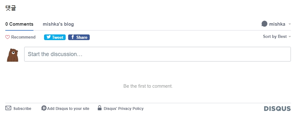현재 disqus에서는 한글을 지원하지 않는 것으로 변경되었다고 합니다.